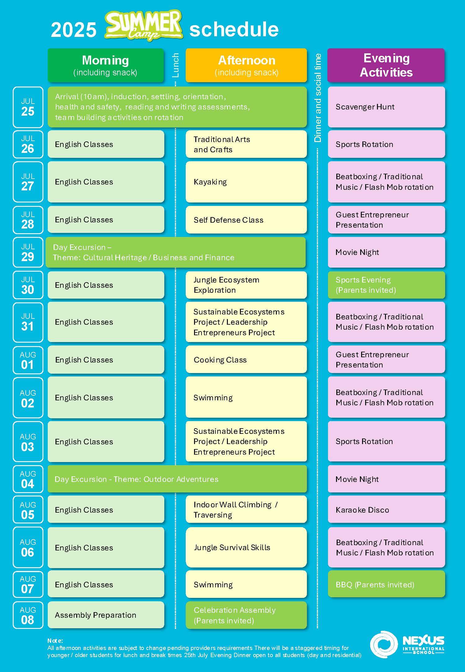 期間中、ネクサスインターナショナルスクールの寮施設に宿泊
